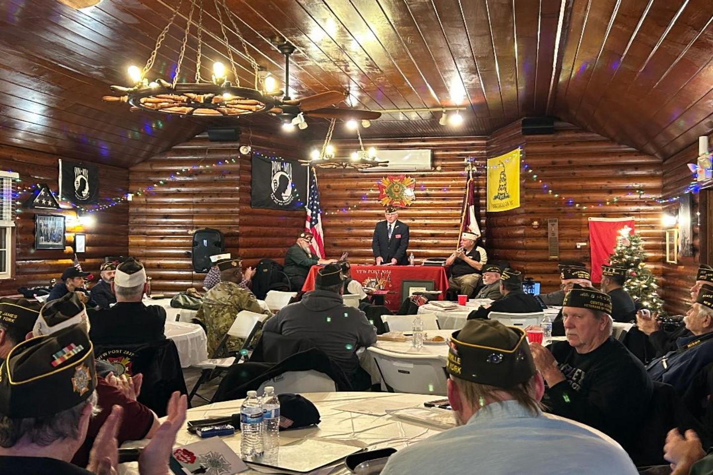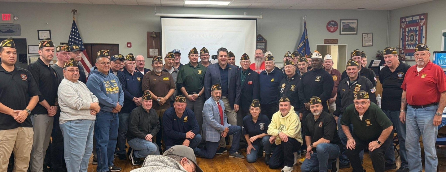 PPC Scott Mckendick laying a Wreath at GySgt David Scharf's final resting place VFW Members and many more at during wreaths across America at Calverton National press conference at Post 5350, with Senator Gillibrand, CE Steve Bellone, and Tom Ronayne PACT Act information. OTI 2025